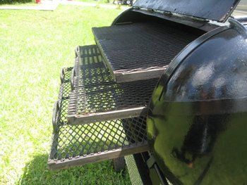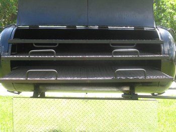 The RG-48 Deluxe has the same features as the RG-48. It utilizes (3) fuel sources - wood,charcoal or gas (propane). The unit has 22 SQ.FT.of cooking area, with 3 removable shelves. Optional features are a gas side burner and a gas main burner that is 60" long and 3/4" in Diameter. The unit has been cured for 16 hours and is ready to be cooked on immediately upon delivery. The unit is delivered 100% assembled.